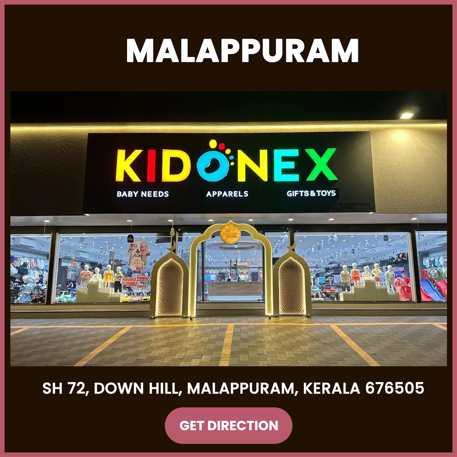 Yes! KIDONEX has multiple physical stores across Malappuram district, Kerala. You can walk in and shop at any of our outlets:
